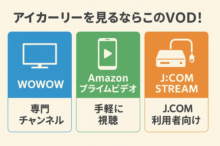 実際、アイカーリーを視聴するには国内外の配信サービスやDVD購入、さらにはVPNを使った方法など、複数の選択肢があります。