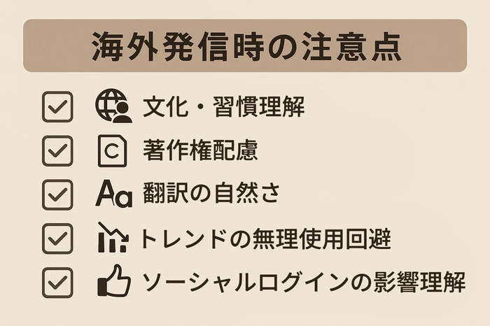 5. 文化・著作権・翻訳ミスなど海外発信時の注意点も押さえて安全に運用する